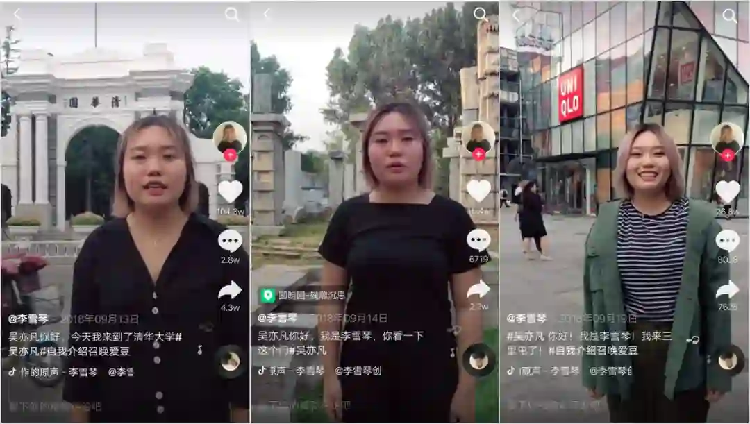 作为吴亦凡的忠实粉丝,她之后还在圆明园和三里屯拍了两段类似的视频,开场白也是“吴亦凡你好,我是李雪琴。”