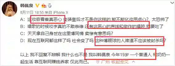 韩美娟的本名是韩佩泉,是一位 00 后少年,翻看他之前的视频,主要内容是化妆和翻唱流行歌曲,但真正让他出圈的是咋咋呼呼的“韩美娟”。