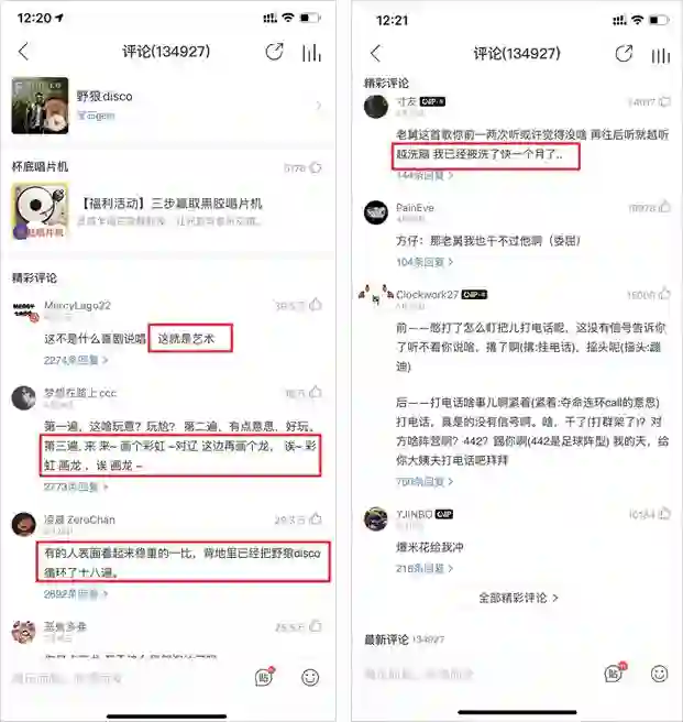 《野狼disco》在网易云音乐上曾一度占领热搜榜第一,超过 13 万的评论,清一色好评,热评第一道出了这首歌火爆背后的真谛: