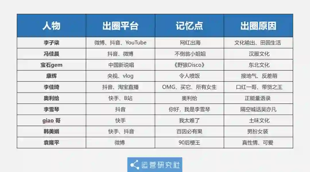 随着直播和短视频平台的发展,越来越多的普通人有了红的机会,例如引起文化输出争议的@李子柒,“口红一哥”@李佳琦、不倒翁小姐姐冯佳晨,下班路上开心蹦跶的农民工@杨才明……