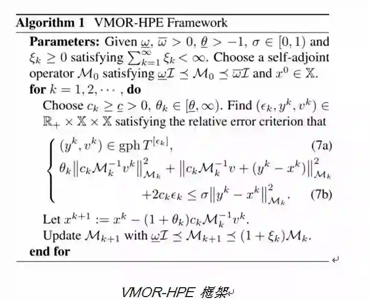 研究表明,这种 VMOR-HPE 算法框架能为原始与原始-对偶算法提供新见解并可用作证明它们的收敛性、迭代复杂度和局部线性收敛速率的强大分析技术。