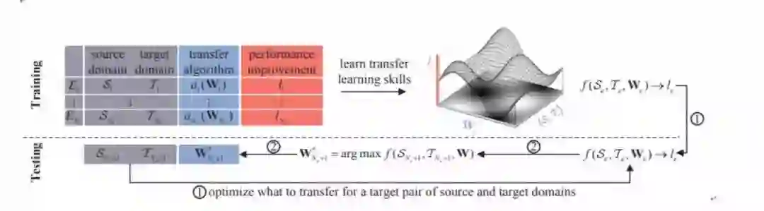 迁移学习的三个核心研究问题是:何时迁移、如何迁移和迁移什么。为特定的迁移任务选择合适的迁移算法往往需要高成本的计算或相关领域的专业知识。为了能更有效地找到适合当前任务的迁移算法,研究者根据人类执行迁移学习的方式,设计了一种可根据之前的迁移学习经历提升新领域之间的迁移学习有效性的新框架:学习迁移(L2T:Learning to Transfer)。