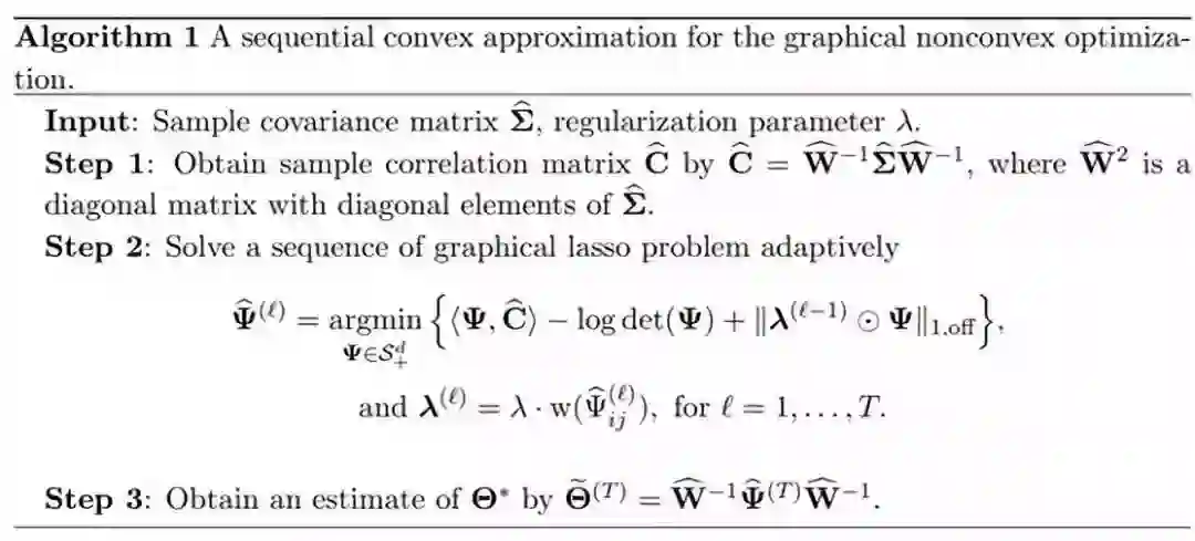 算法 1 可使用 glasso 等现有的 R 语言软件包实现。