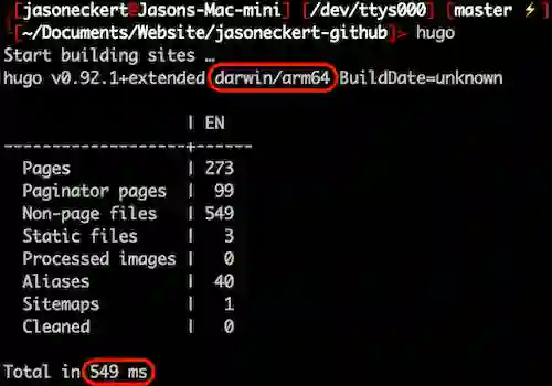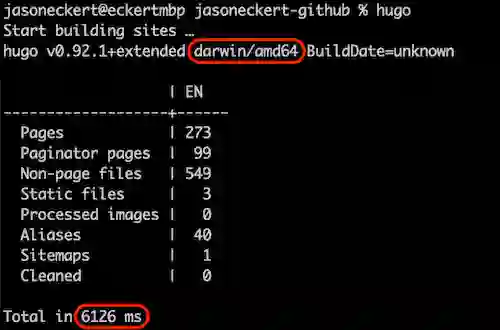 上个月,Jason Eckert 正好曾对同一 macOS 版本下英特尔芯片和 M1 芯片的 Hugo 表现做了对比:“Intel Core i9 用了 6126 毫秒(6 秒)来生成网站的所有 273 个页面,而 M1 只用了 549 毫秒(半秒)——苹果 M1 的速度提高了 11 倍以上!”