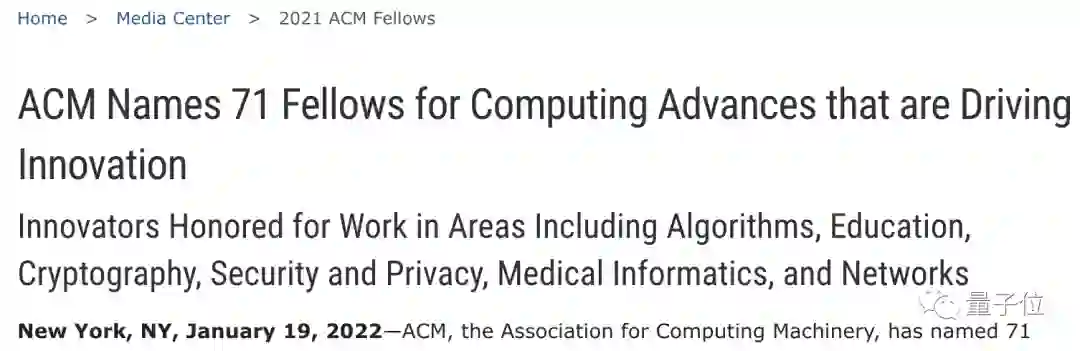 2021年ACM Fellow 71人“大名单”,刚刚出炉。