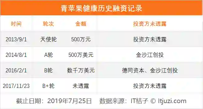 IT 桔子数据显示,「青苹果健康」曾获得 4 轮融资,累计融资金额超过 2 亿元(经计算后得出),投资方包括金沙江创投。