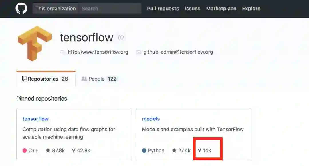 14K个Fork来自所有TensorFlow模型的被Fork数总和↑