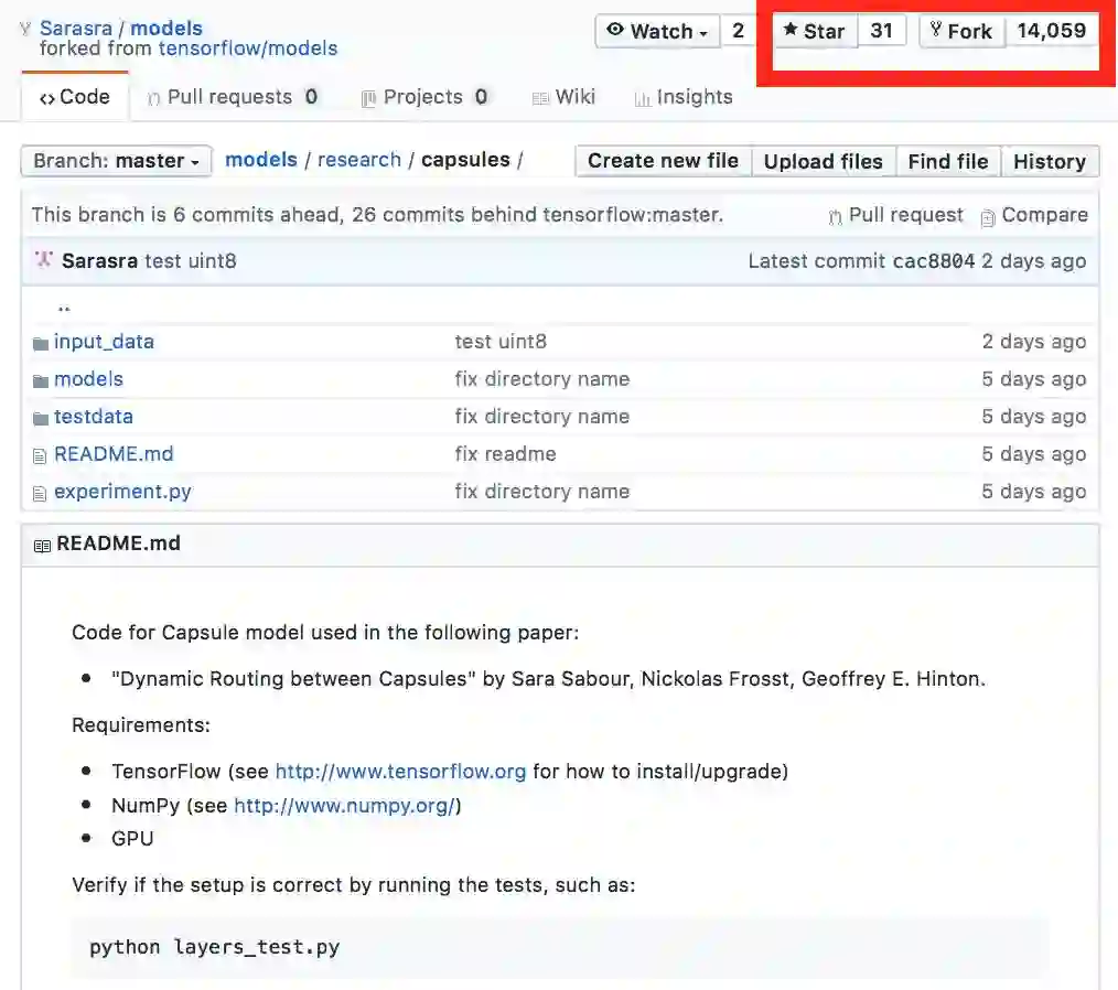 今天,有科技媒体发布Capsule Networks(CapsNet)开源的消息,文摘菌激动的去找了找Github链接,发现本次开源非常低调且隐蔽,隐藏在谷歌tensorflow的专题之下,没有相关报道,谷歌也搜不到,不熟悉Github的同学很难查找。