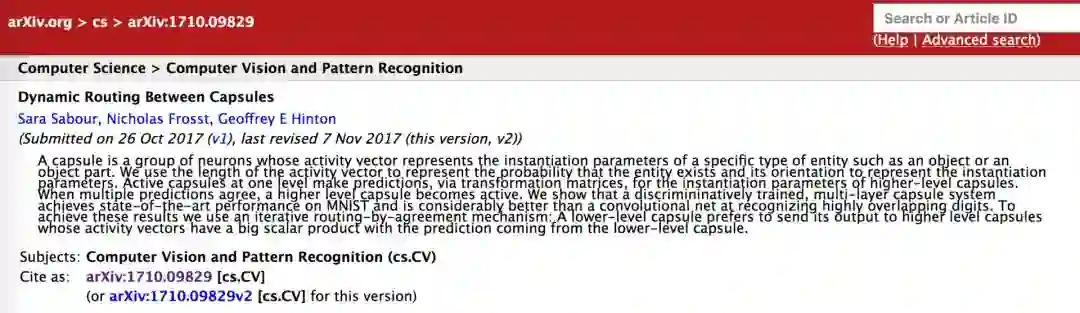 欲取代CNN的Capsule Network究竟是什么来头?它能为AI界带来革命性转折么?大数据文摘之前也曾就此做过一篇详细解读,点击查看:《欲取代CNN的Capsule Network究竟是什么来头?它能为AI界带来革命性转折么?》
