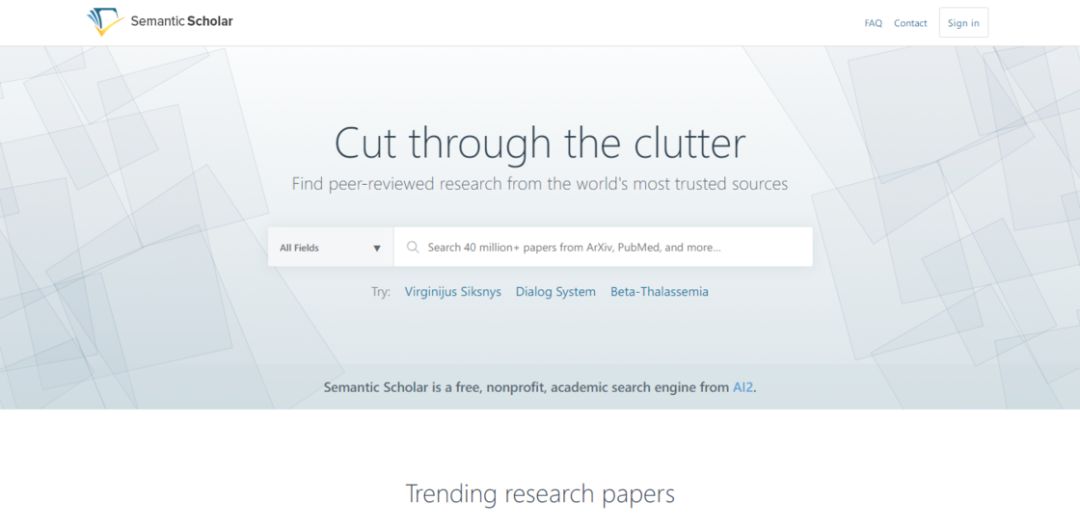 Semantic Scholar 是由微软联合创始人 Paul Allen 所开发的免费学术搜索引擎,你可以在 Semantic Scholar 上搜索到来自学术期刊、学术会议及学术机构的文献。在搜索学术文献的时候,你不但可以通过时间线快速找到具体年份范围的文献,还可以通过强大的筛选功能更加精准地找到自己所需要的文献。