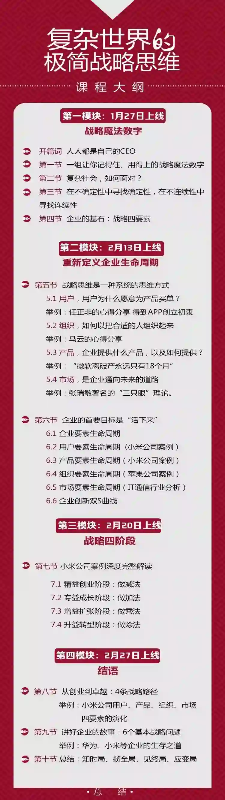 张瑞敏先生曾说过未来的企业里“人人都是CEO”,马云也曾经说过“眼光有多大,未来就有多大”。有人说,思维层次的差别就是高度之差,而高度之差带来的是全方位的差异。你可能成不了战略大家,但是至少要掌握用战略思维来分析、判断、预见和决策等的一种动态思考过程。