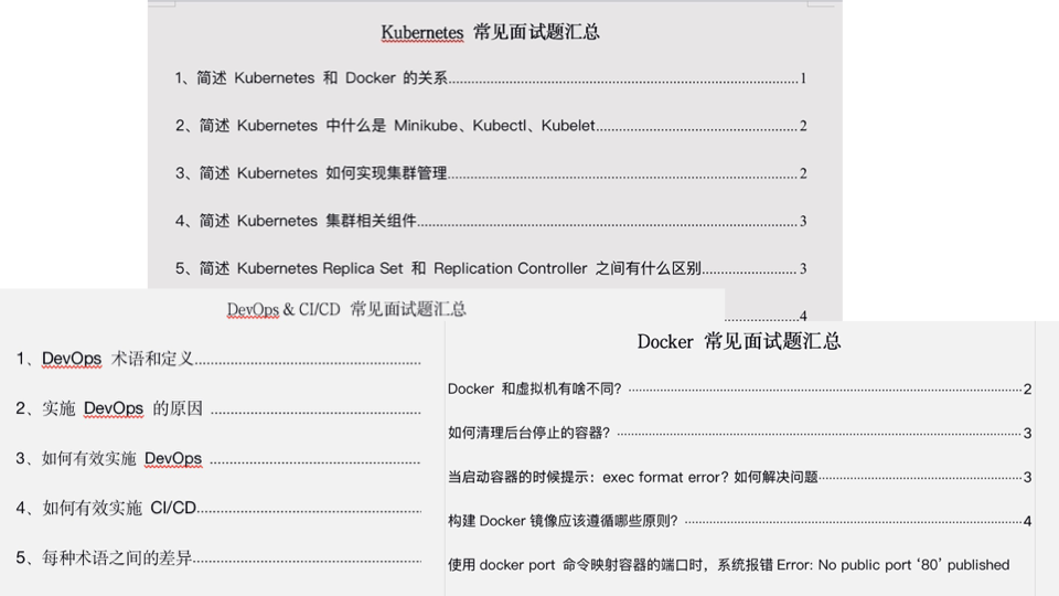 1. 汇集这半年来各大厂的真实面试情况,吐血整理的130道大厂面试真题,覆盖了Docker、Kubernetes、DevOps、CI/CD这些云原生核心技术栈,并且还包含了答案和详细解析。