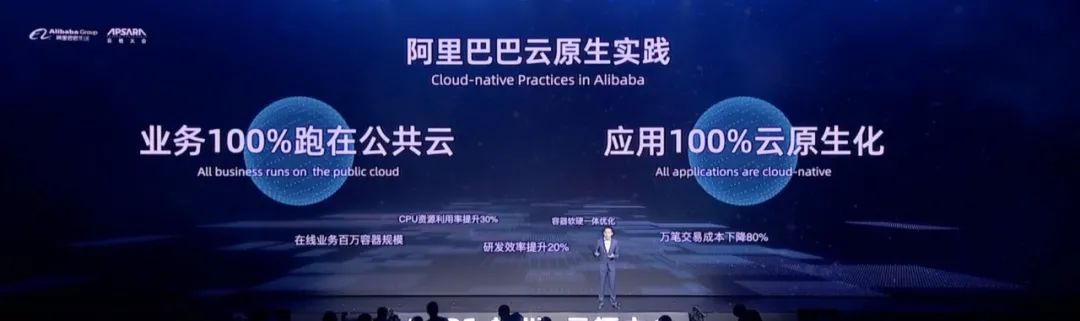 阿里已经实现所有业务 100%跑在公共云上,应用 100%云原生化;