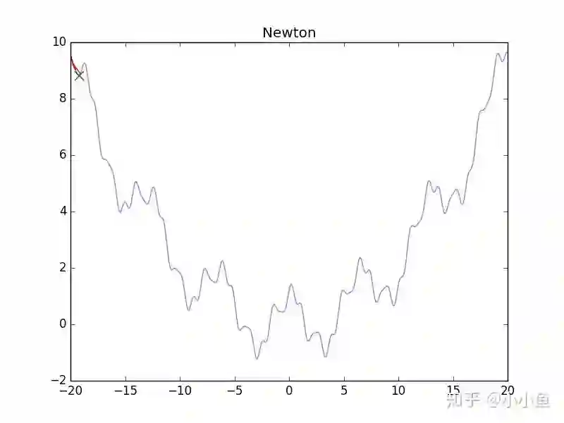 初始xwhile True:g = df(x) # 一阶导数gg = ddf(x) # 二阶导数x = x - g/gg # 走到曲面的最低点