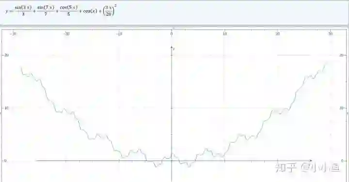 为了可视化&更好的理解这些优化算法,我首先拼出了一个很变态的一维函数: