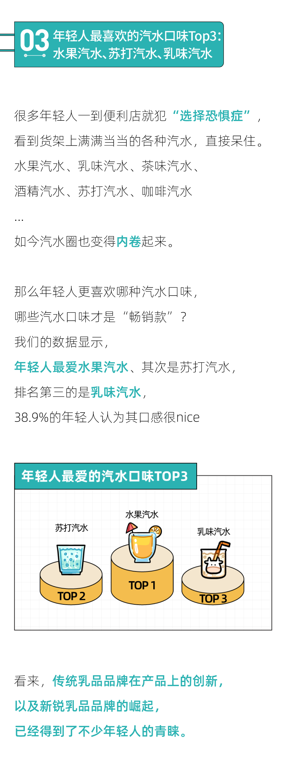 如今,愈发精致的年轻人不再仅仅追求一时的快感,健康、营养成为他们选择汽水的重要因素。