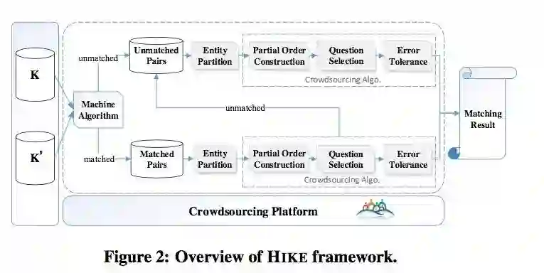 基于众包的方法解决实体消岐问题。首先自动计算所有候选实体对的分数,然后基于一个询问的策略(某个候选实体对是否真的匹配)来推断出其它未询问的实体对的正确性。