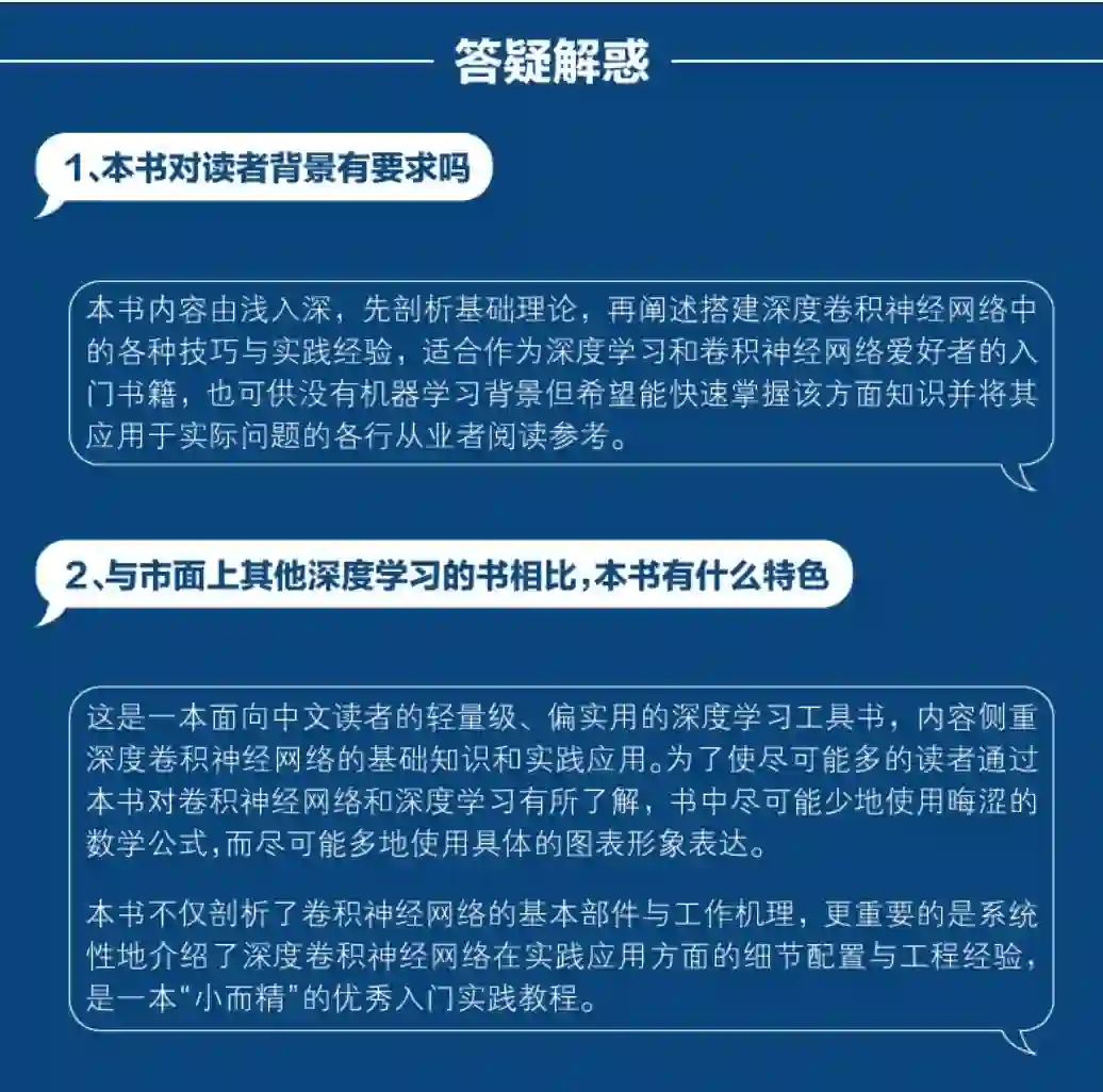 无论你是已经身处工业界的工程师还是在校的研究生,只要在做深度学习、卷积神经网络和视觉应用,本书都非常值得一读。