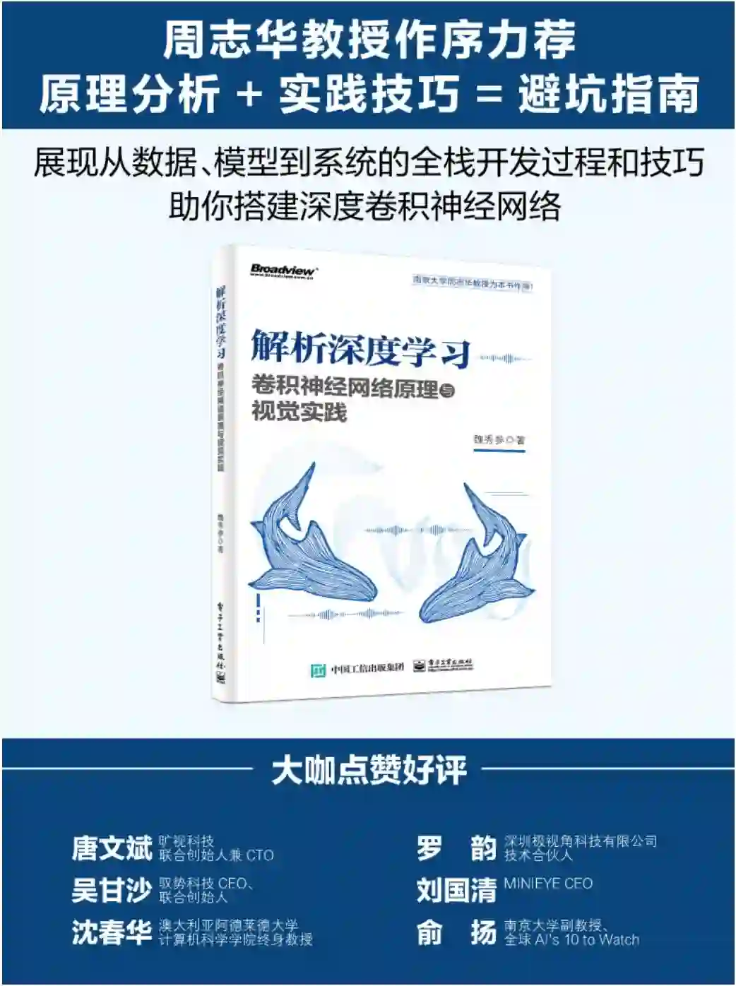 秀参的这本《解析深度学习:卷积神经网络原理与视觉实践》从卷积神经网络的基础知识入手,搭配上计算机视觉领域的实操技巧,内容翔实、语言精炼、理论结合实践,不仅适合深度学习领域刚入门的读者参考学习,同时也可供相关领域从业工作者作为使用手册常伴左右。