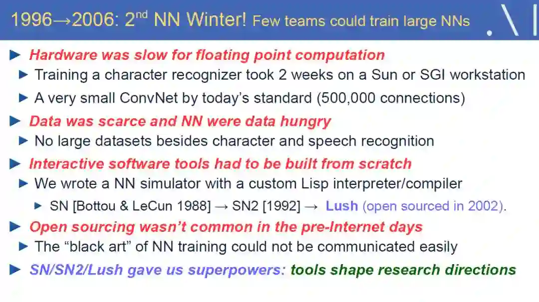 首先Yann LeCun 花大篇幅介绍了DL这几十年的发展历史