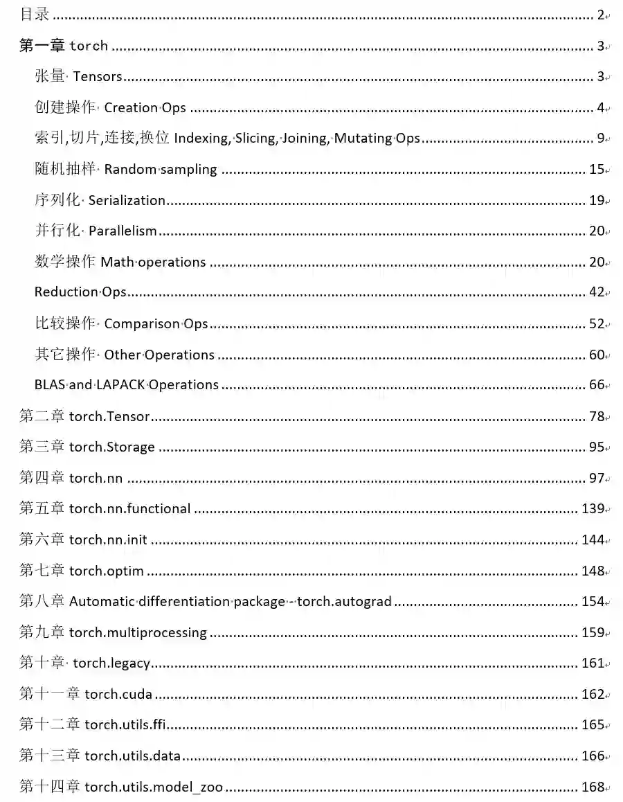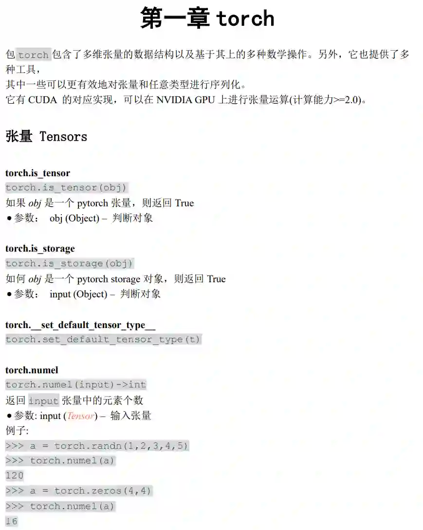 本手册中分为14章,从最基础的创建张量开始,逐步加深,涵盖小伙伴们机会所有常用的函数。为了方便小伙伴们的查阅,我们特意推出了带有书签版的PDF供大家下载。