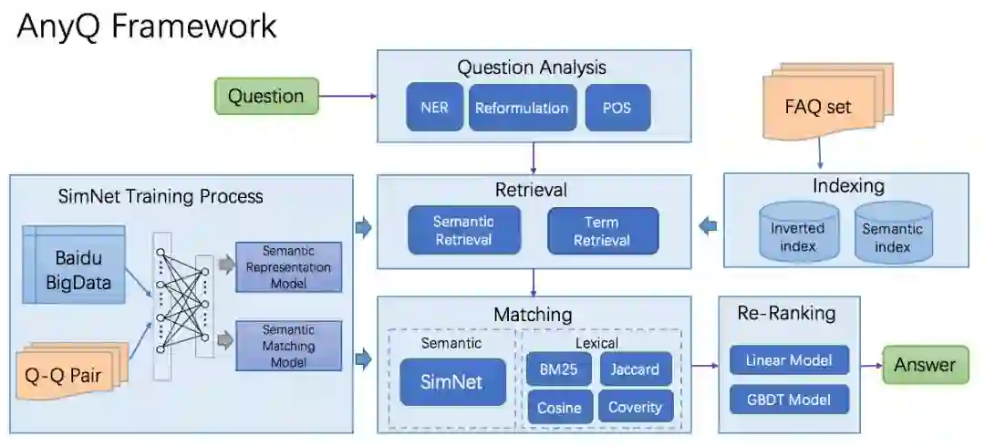 【导读】智能问答系统,近两年被炒得热火朝天。然而,刨除花式 PPT以及论文里的各种黑科技,我们最想知道的其实是:这东西到底怎么落地?近日,百度开源了他们的主要面向 FAQ集合的问答系统框架AnyQ(ANswer Your Questions)。该框架结构清晰,设计明朗,可以为问答系统落地,提供一种解决思路。