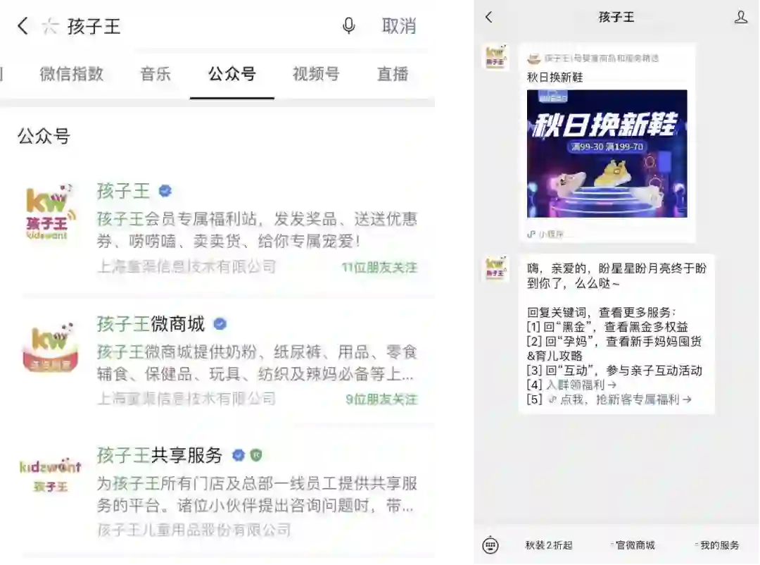 在孩子王主要的线上渠道,例如公众号、app、小程序等,都会在主要位置放置会员相关等权益和内容,以福利诱导用户进行会员的注册,并在后续提供用户想要获得的服务。