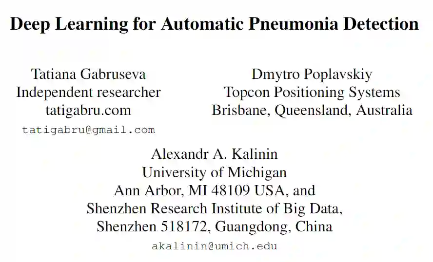 本文为Kaggle X光肺炎检测比赛第二名方案。在这项工作中,使用了基于Se-ResNext101为主干网络的RetineNet SSD网络模型, 同时使用了数据增广和多任务学习的技巧来实现肺炎区域的检测。