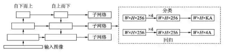 (4)回归子网络:回归子网络与分类子网络平行,预测每一个预选框的偏移量,最终输出特征大小为4A×W×W。与当前主流工作不同的是,两个子网络没有权重的共享。