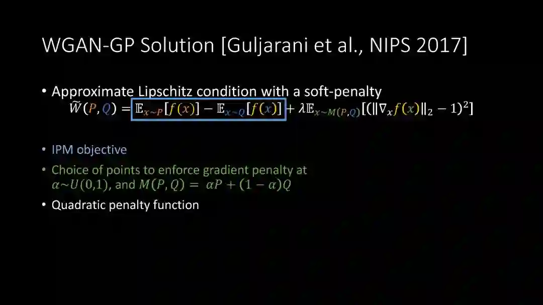 • 基于积分概率度量(IPM)的GAN: Wasserstein GANs