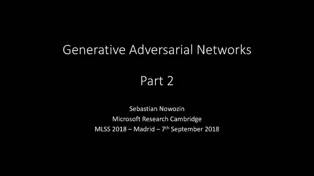 【导读】Sebastian Nowozin在机器学习夏季课程(MLSS 2018年9月)做了关于GAN的教学,153页PPT详尽的解释了GAN的发展脉络和最新进展,此外他所提供原版大小为286MB 的pptx中包含大量动画效果,对课程的理解很有帮助。