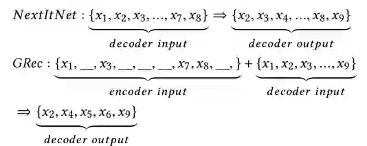 论文主要对比了GRec与最新的卷积网络NextItNet,如图4所示。