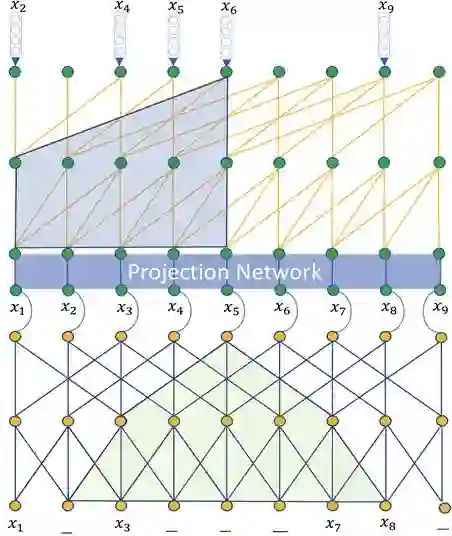 图2: GRec框架(采用两层卷积网络)。编码器中被有意遮挡,解码器只预测这部分被遮挡的物品。解码器的输入端并不发生变化,包含整个原始输入序列。在解码器embedding 和编码器的最后hidden之间设计了一个基于残差结构的映射网络,很够更大程度的结合编码器和解码器表征。可以发现的可视域相对于只有解码器结构变得更大了,不仅包含解码器中,同时包含了编码器中的。由于遮挡策略是随机生成的,在多次训练过程会覆盖除了以外序列中所有item表征。