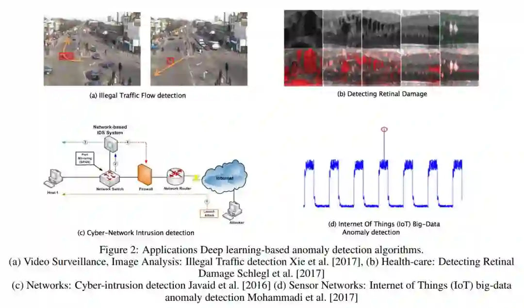 近年来,基于深度学习的异常检测算法越来越流行,并已应用于各种任务集,如图2所示;研究表明,深度学习完全优于传统方法(Javaid[2016])。本文的研究目的有两个方面,首先对深度异常检测(DAD)的研究方法进行了系统、全面的综述。此外,我们还讨论了跨不同应用领域采用DAD方法的问题,并评估了它们的有效性。