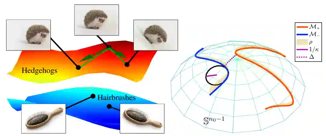 这篇论文研究了多重流形问题,这是一种在机器视觉应用中建模的二进制分类任务,其中训练了一个深层的全连接神经网络来分离单位球面的两个低维子流形......
