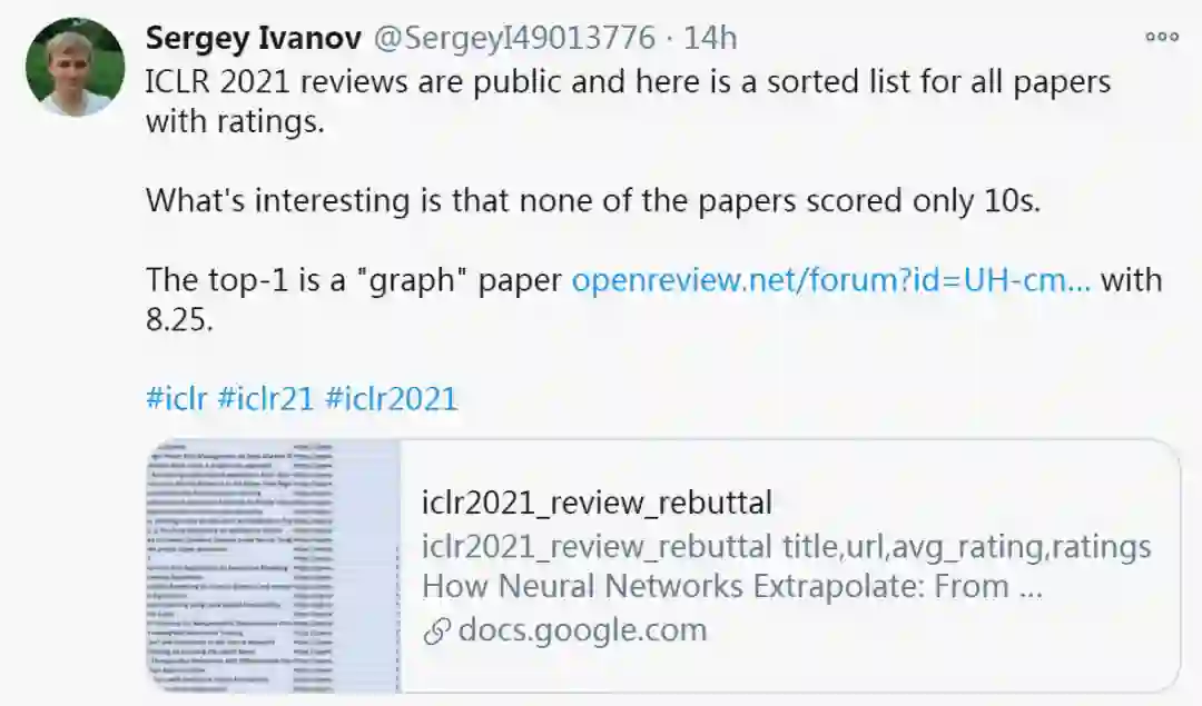 其中就包括上文提到的ICLR 2021平均分第一的论文,