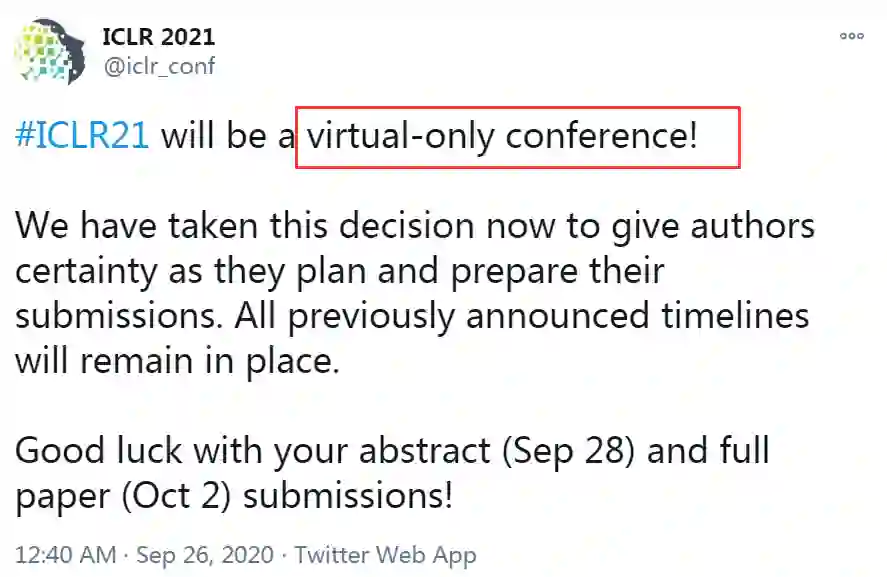 最后,ICLR官方已做出表示, 2021年5月4日-8日会议将仅有线上召开。