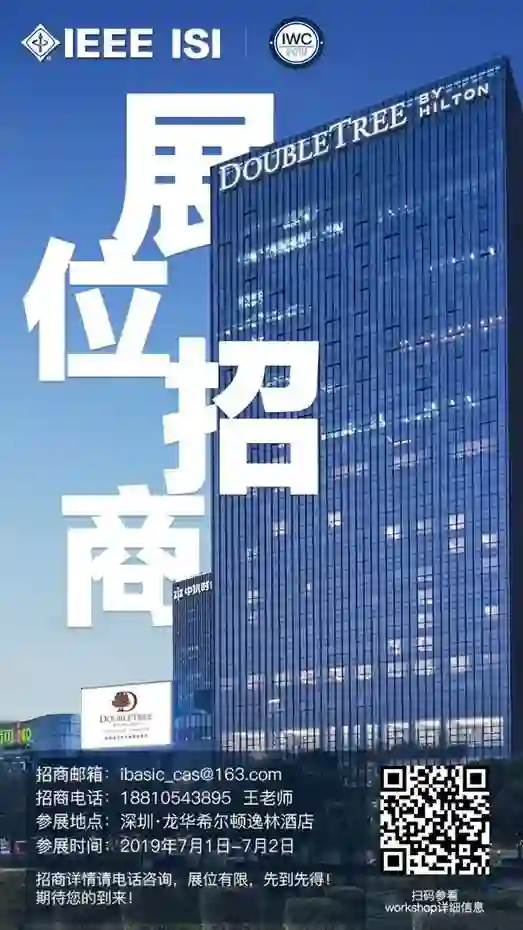 安全学领域国际会议ISI2019及国际大数据分析竞赛IWC2019 Workshop将于2019年7月1日-3日在深圳·龙华希尔顿逸林酒店联合召开。