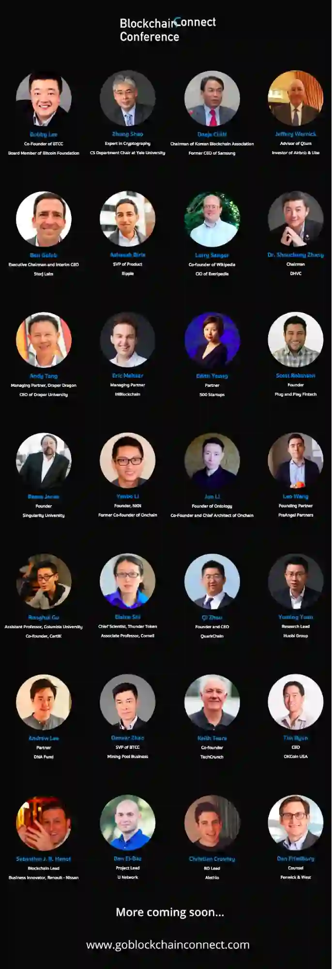 除了刚才提到的三位嘉宾,出席我们6月26、27号 Blockchain Connect Conference 大会的嘉宾还有很多,具体可以去大会官网查看: