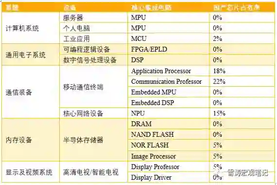 表1: 当前中国核心集成电路的国产芯片占有率 |