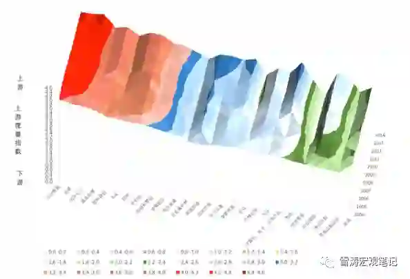 所以中国制造主要就是两个方向:一是往价值链短的行业集聚,比如知识和技术密集的高端制造,然后把价值链长的行业逐渐转移出去;二是往价值链的中高端转移,比如从组装制造升级到设备材料和设计研发。中国制造里相对上游度较高(大于0.5)的是运输设备、塑料橡胶、金属制品。处在中间(0.3-0.5)的是汽车、电气设备、机械设备。处在末尾(0.1-0.3)的是计算机、电子、光学产品、化学化工、基本金属。越在末尾的行业,越容易被核心技术和核心零部件卡脖子,也是中国制造越应该努力突破的方向。