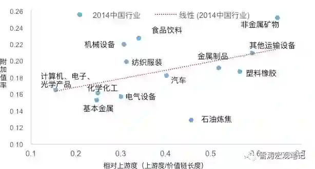 图3:2014年中国制造相对上游度 vs 附加值率 |