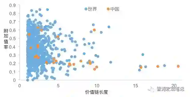 中国制造在全球价值链分工有两个特点:一是中国制造的价值链长,二是中国制造的附加值率低。一个产业的价值链越长,说明这个产业的全球化程度越高,分工越精细,附加值就越低,这就好比是奥运会,一个项目参加的国家越多,中国夺金的难度就越大,像马术这种少数国家参加的项目,中国努力一下反而可能突破。