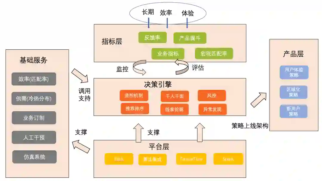 这里面需要突出的是分别对供需建模 ( 供需关系 )、决策匹配建模 ( 匹配率预估 )、分配建模 ( 流控、运筹规划 )、匹配时效建模 ( 时间预估 )。