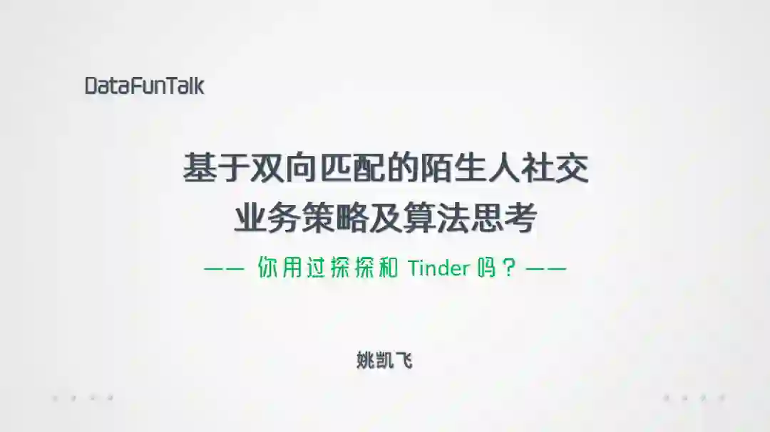 首先我们大致介绍下以Tinder为代表的陌生人社交的业务和产品形态,然后再分享其中一些比较有趣的问题,最后我们看看有哪些东西是可以数据化和算法介入的。
