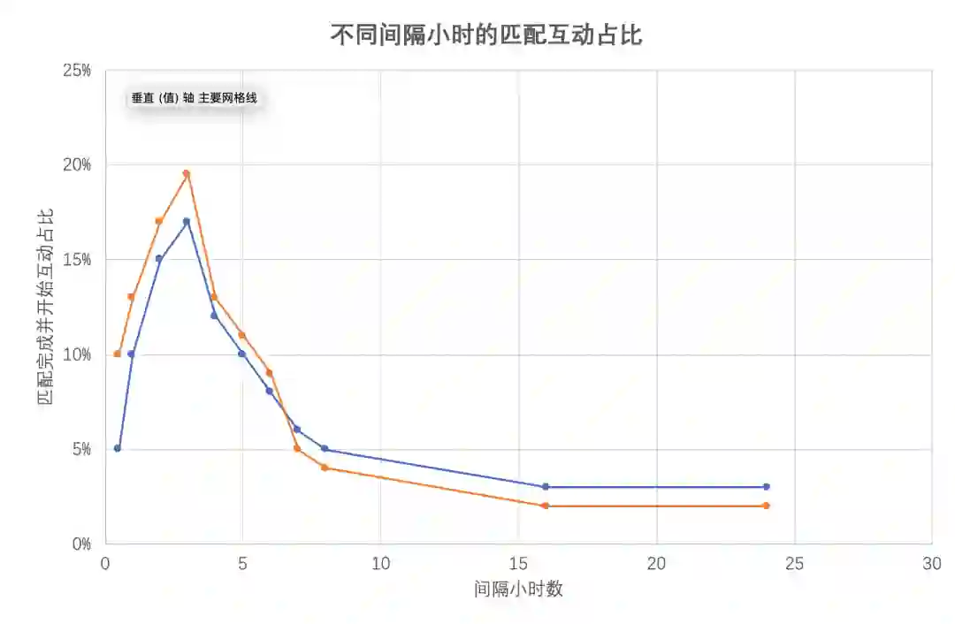 初期新用户对匹配或对高颜值的期待,会非常有别于老用户,比如往往初次体验对颜值期待更高,当然通过数据分析,我们发现颜值也是测试偏好和拉新的手段。但长期来说,匹配聊天成功率是普遍的终极需求。新用户的首次匹配成功,开启聊天的时间间隔,会对长期留存产生较大的影响。