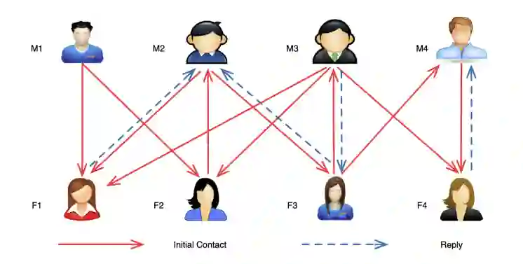 上面也说过,大多数交友类APP最终的用户体验诉求是匹配成功 ( 即用户开始聊天、交流、约会、成为男女朋友等 ),这个跟大部分互联产品不一样的地方是非单向网络,双向网络存在双向匹配问题,单向满意效用低。双向匹配网络中,如果有用户发现了很多心仪的对象,右滑表示喜欢以后,如果不能有一定比例的回音,用户可能很快流失,这也说明单单从一方来决定最终的展现是有问题的,而这些产品往往非常依赖于智能匹配技术,这就给推荐系统提出了新的挑战。