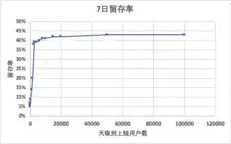 互联网的本质就是一张信息网络,互联网产品普遍具有网络效应,而社交类产品则更加依赖于网络效应,边际成本下降明显,边际收益上升明显。那某个社交产品如何评估网络效应的强弱,或者说达到多少才是合适的呢。前两天跟一个朋友交流陌生人社交,他们有一个观点就是在可互动 ( 比如基于LBS的产品,可互动指的是距离不能大于某个值 ) 的用户每日用户数需要达到2000以上,7日留存在40%以上,这个产品是初具网络效应的,值得投入持续拉新最大的 ( 当然上述2000和40%会被具体产品的用户活跃情况、性别比例、产品特性决定 )。比如可以分析每个区块 ( 比如同城 ) 中人数对整体活跃度的影响,最终可以画出如下的图表,随着用户增长,拐点会出现 ( 拐点可能就是magic number ),规模临界点前后的差异巨大。当然下图需要在用户体量增加时做好匹配,不然用户量的上升可以使体验下降,继而带来留存的下降。
