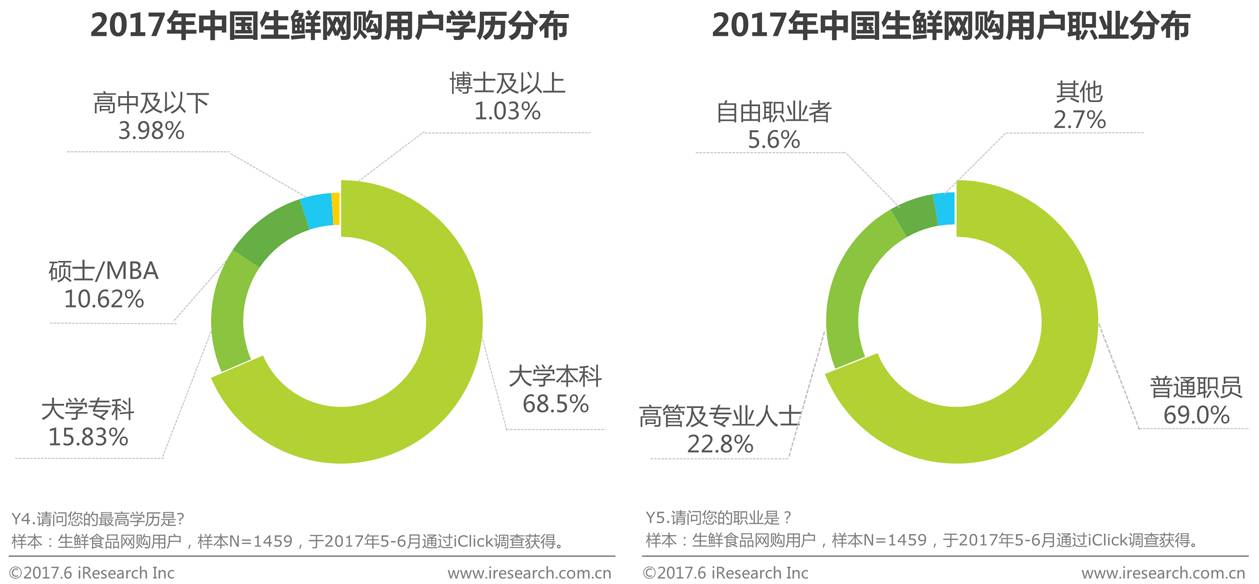 ▌本科毕业的普通职员为线上生鲜食品的主要消费人群
