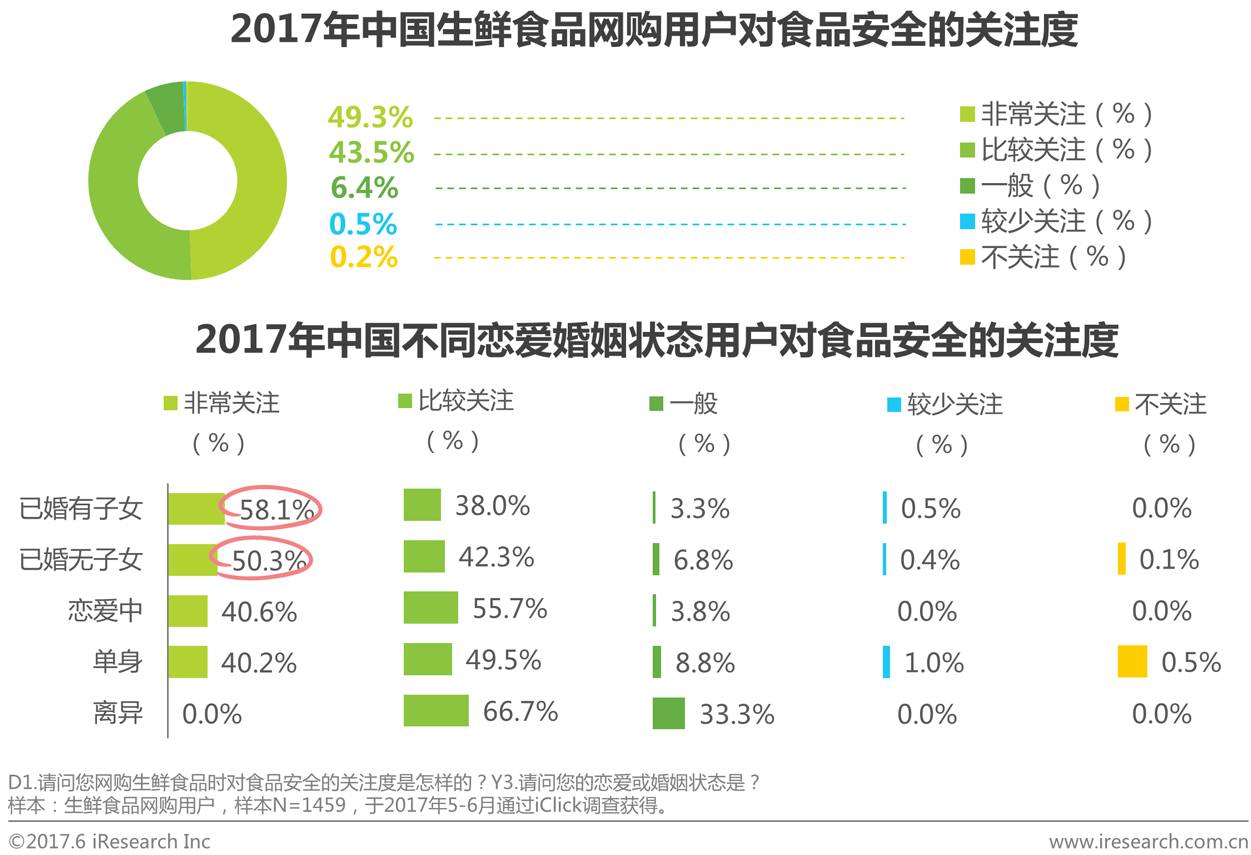 艾瑞调研数据显示,表示非常关注和比较关注食品安全的用户占比高达92.8%,消费者的食品安全认知意识较高。此外,在生鲜食品网购用户中,家庭用户对食品安全关注度高于非家庭用户。